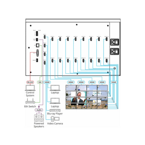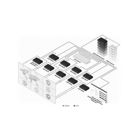 La solución sobre IP facilita el despliegue y la gestión de videowalls modulares en infraestructuras AV en redes IP. Se presenta en forma de un dispositivo denominado decodificador múltiple que puede funcionar como unidad independiente o en combinación con otros nodos.